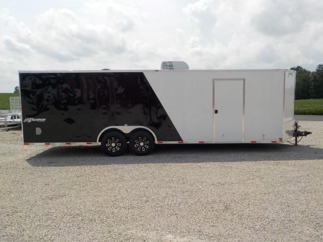 28 Enclosed Car Hauler With Black Gloss Exterior This Trailer Features An On Board Generator Comp Enclosed Car Hauler Car Hauler Trailer Enclosed Car Trailer